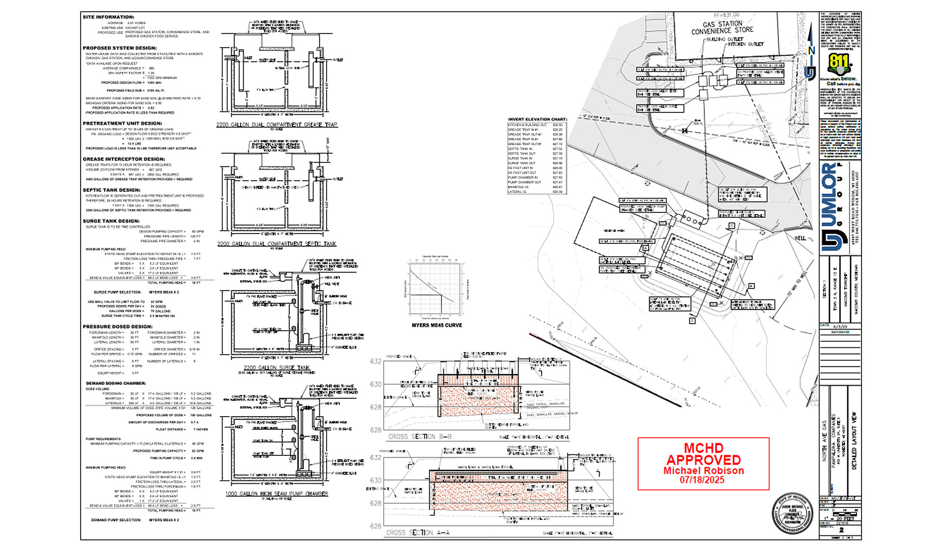 The Umlor Group provided site development services as well as an engineered septic design for a gas station and convenience store with food service. Due to the food service component, additional grease trap and pretreatment system design was required.